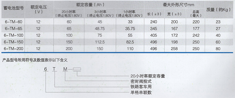 ●6-TM系列蓄電池型號、基本參數(shù)及外形尺寸
